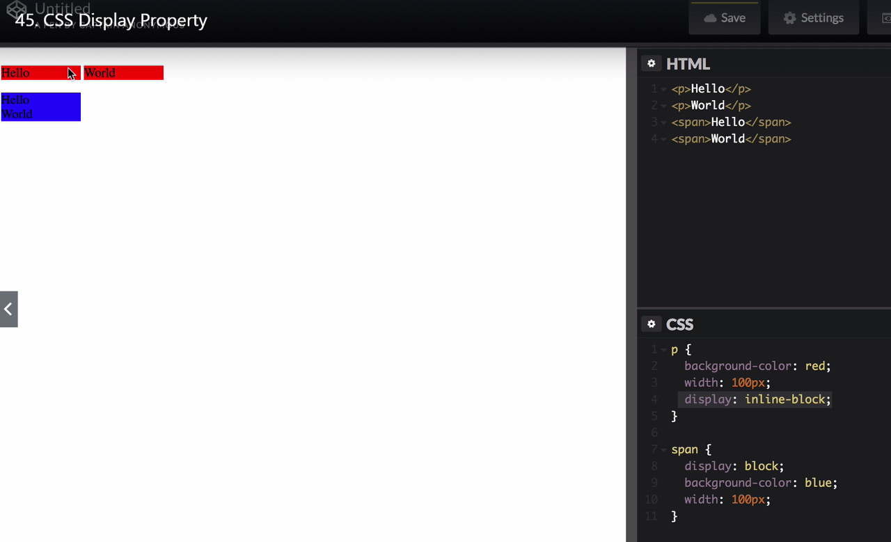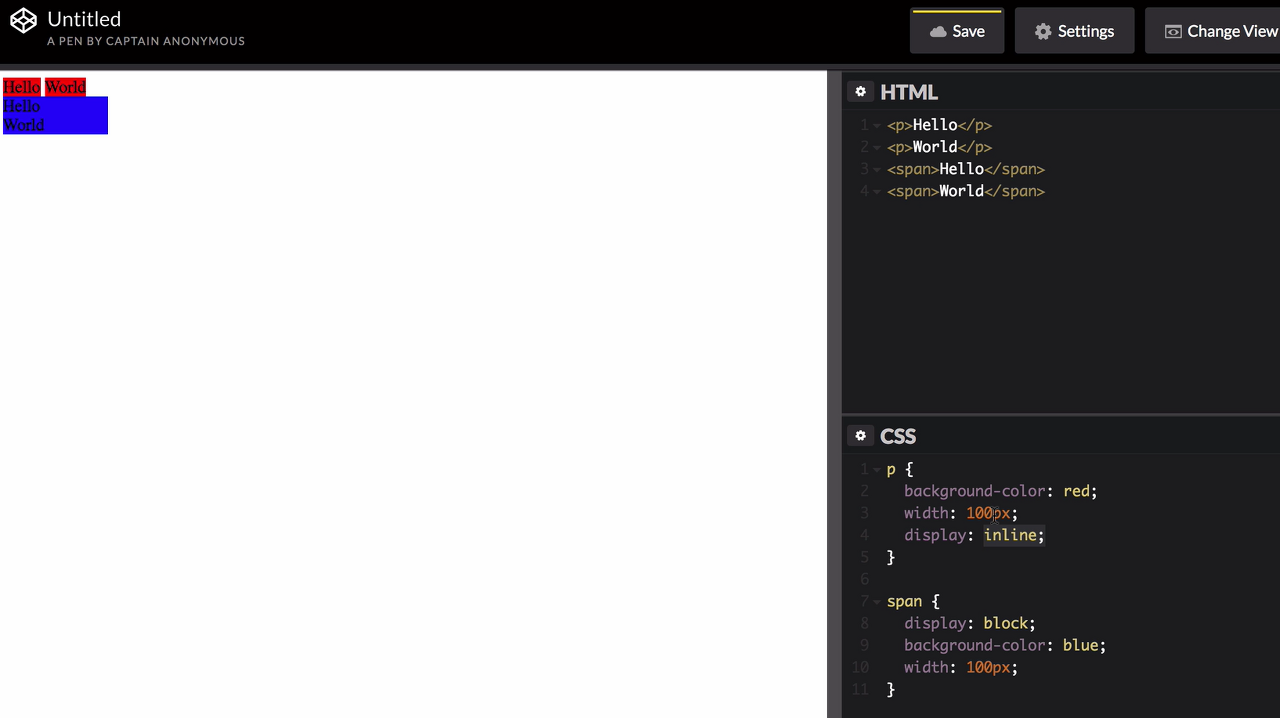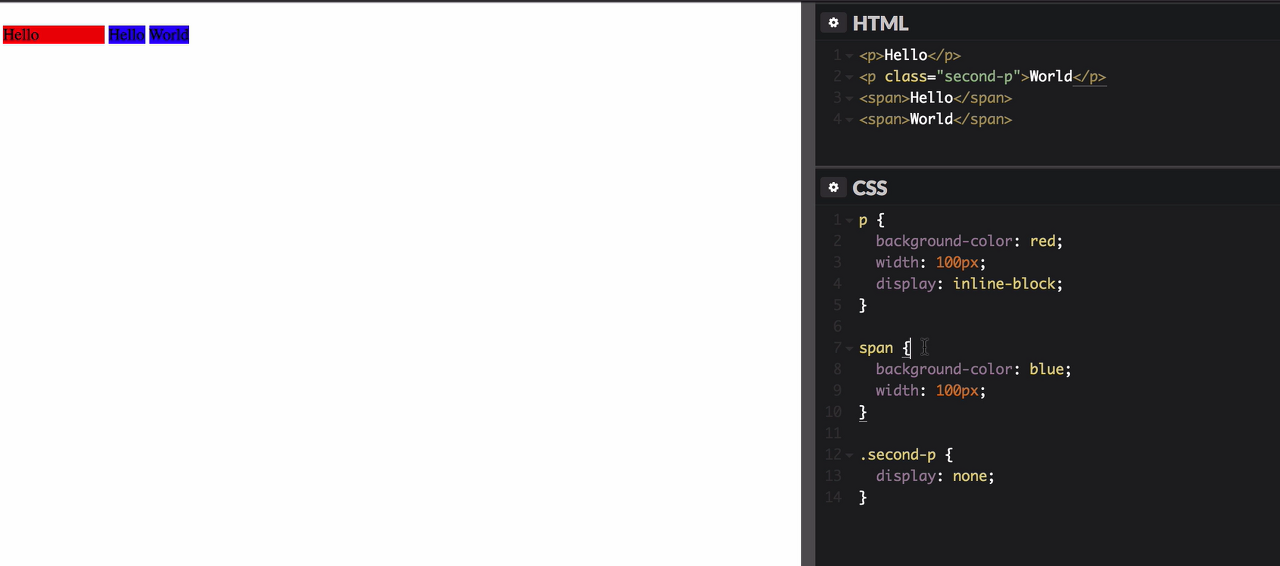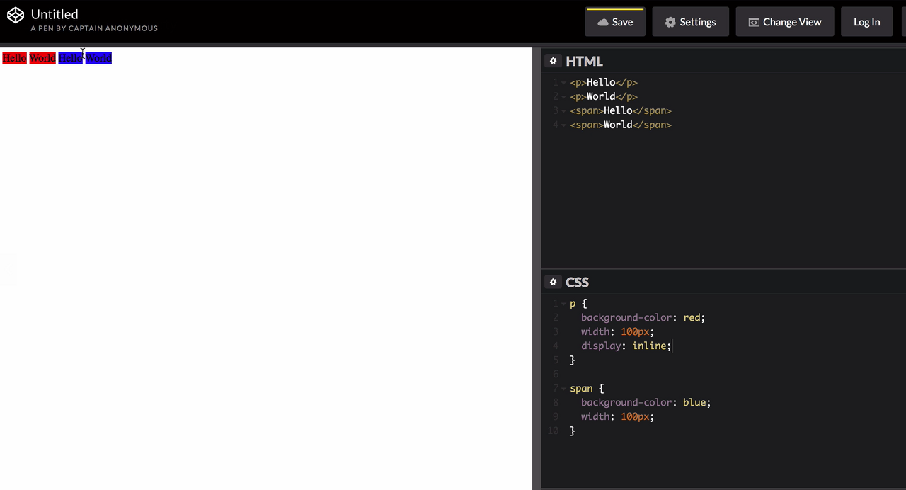 display:inline 을 사용해서 block elements를 같은 줄에 옮길 수 있다. 그러나 width는 적용되지 않는다.